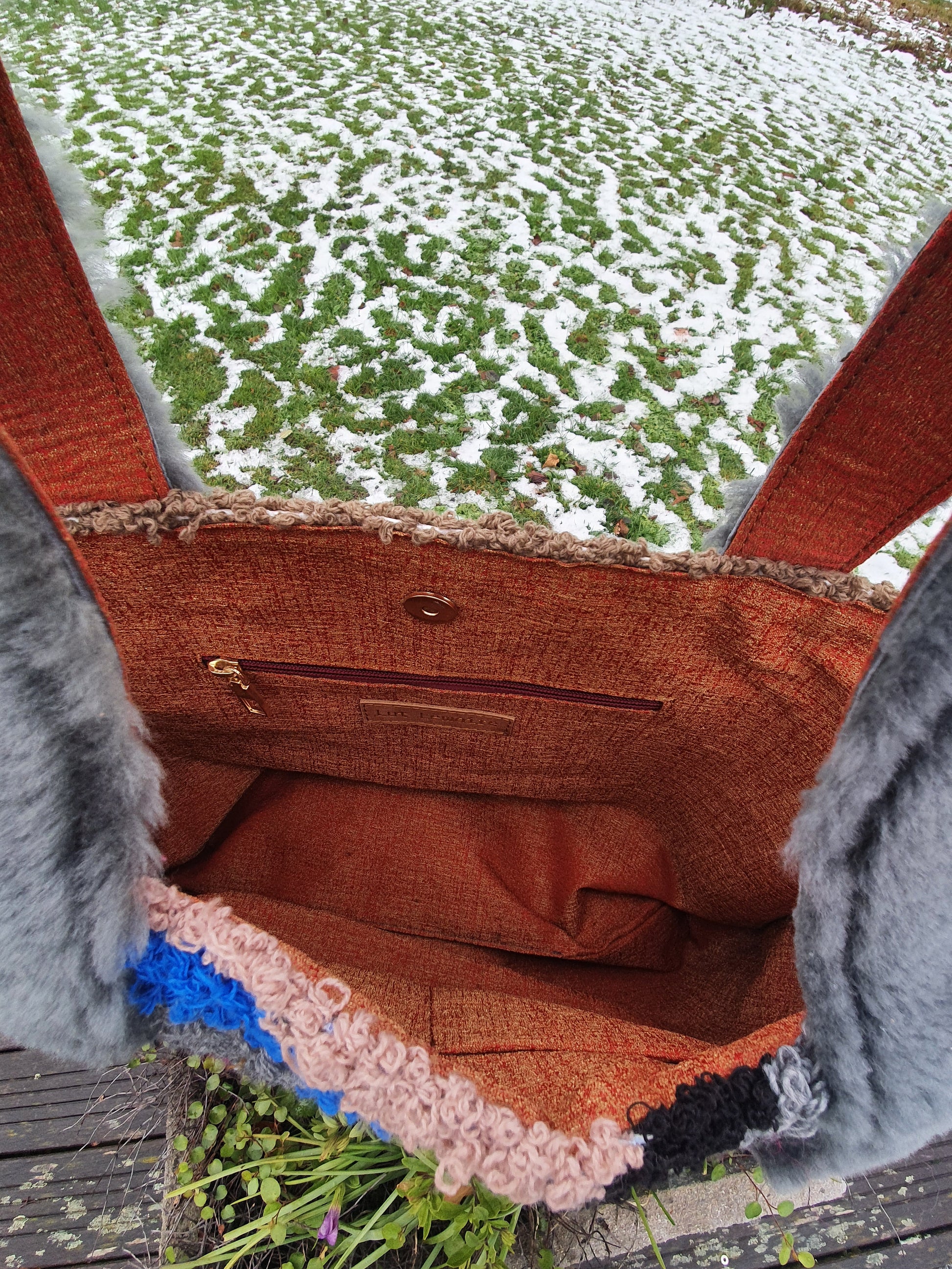 The bag has 1 inner pocket with zip, 2 pockets for keys or smartphone.